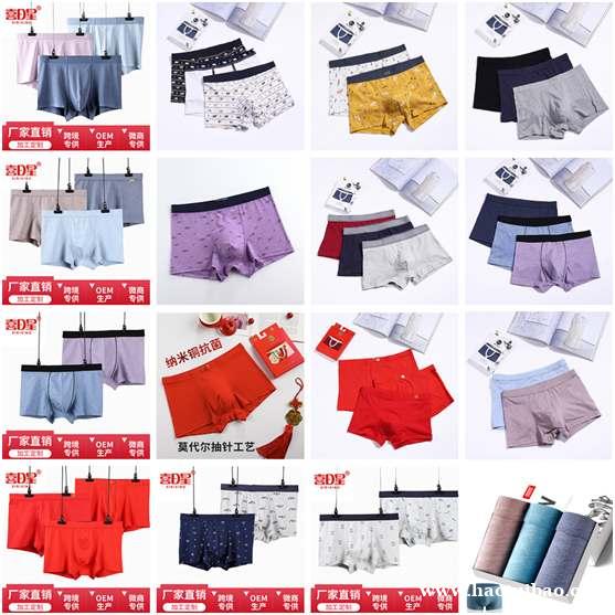 信息标题:棉类混纺盒装平角裤 单色四角裤莫代尔平角裤